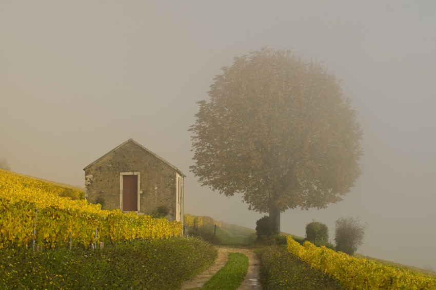 Apologies for the very intermittent service here. An explanation is required. Just as I had got home from the 2 weeks of harvest shooting, edited what my clients needed and then begun to post again, my good friend Thierry Gaudillere from Bourgogne Aujourd’hui magazine sent two ravishing images of light on Le Charlemagne’ yellow/gold vines. I was hooked and had to return as soon as I saw a promising forecast.