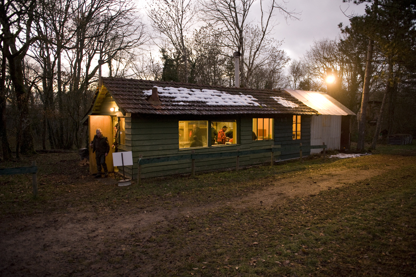 Not before time we are back at the hunters cabin where a four course meal has been prepared; quiche (who said real men don’t eat quiche ? French hunters take seconds!) followed by beef casserole, cheese and creme caramel, all accompanied by a glass or two.