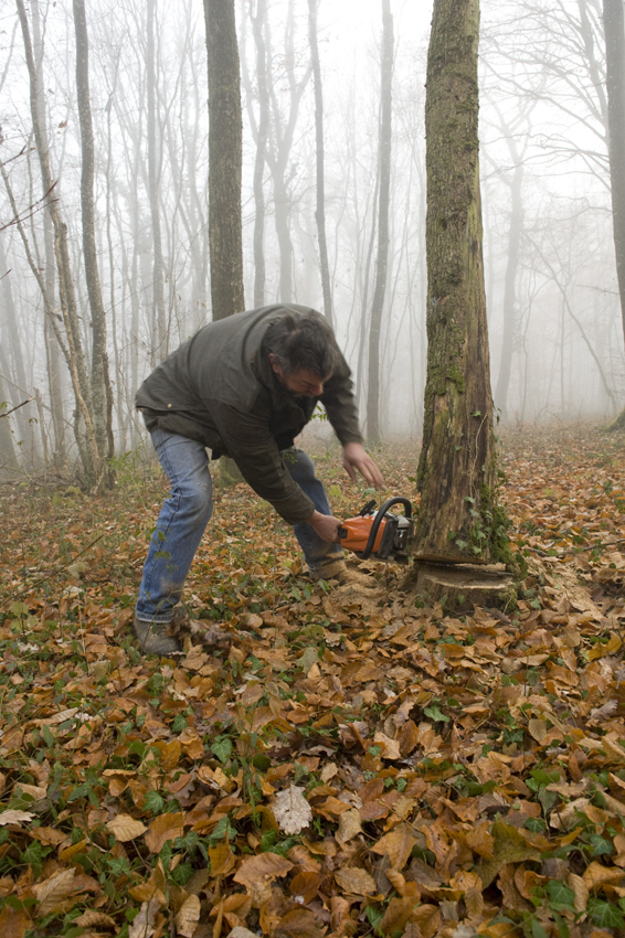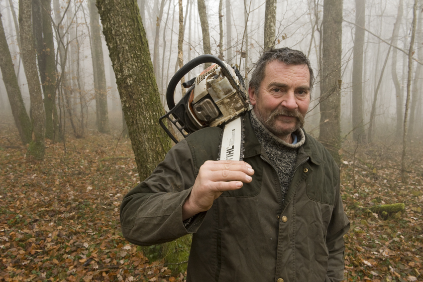 The frost has gone but the fog remains as we trek into the woods, Sylvain’s saw over his shoulder, looking for things to cut up and any sign of life from the creatures inhabiting the wood.