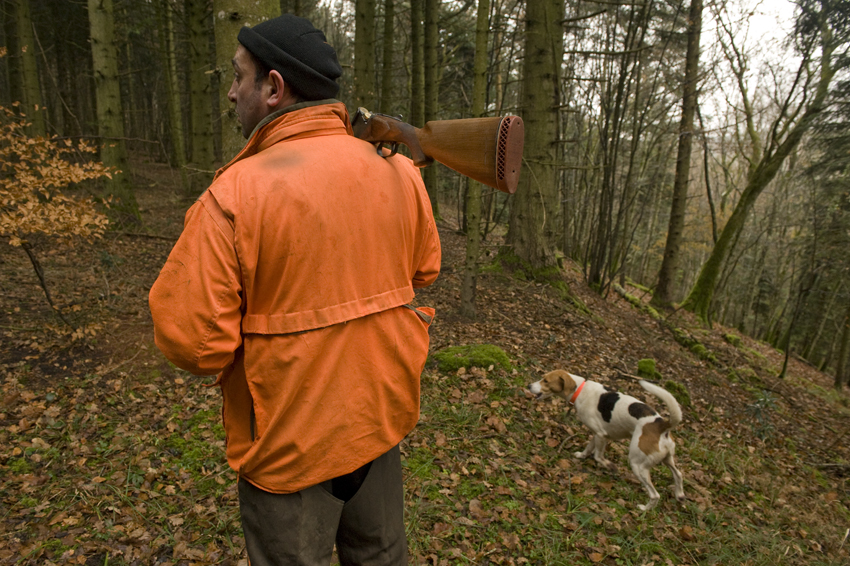 You control nothing and don’t know what will happen next. A steep learning curve and, on a damp winter day when leaves cover loose stones and the moss is wet, its a slippery one. I spent the morning following as close as I could to one of the trackers whose job it was to drive boar or deer towards the waiting guns. Alternately struggling through undergrowth while trying to keep your feet and standing stock still while the tracker looks and listens for movement, you lose any idea of time, distance and direction. The sound of dogs barking, the bells on their collars tinkling to identify them, horns signaling a sighting of trail or beast and the staccato gutteral calls between trackers, even an occasional shot, all muffled by the trees give the situation a dreamlike, other worldly, quality.