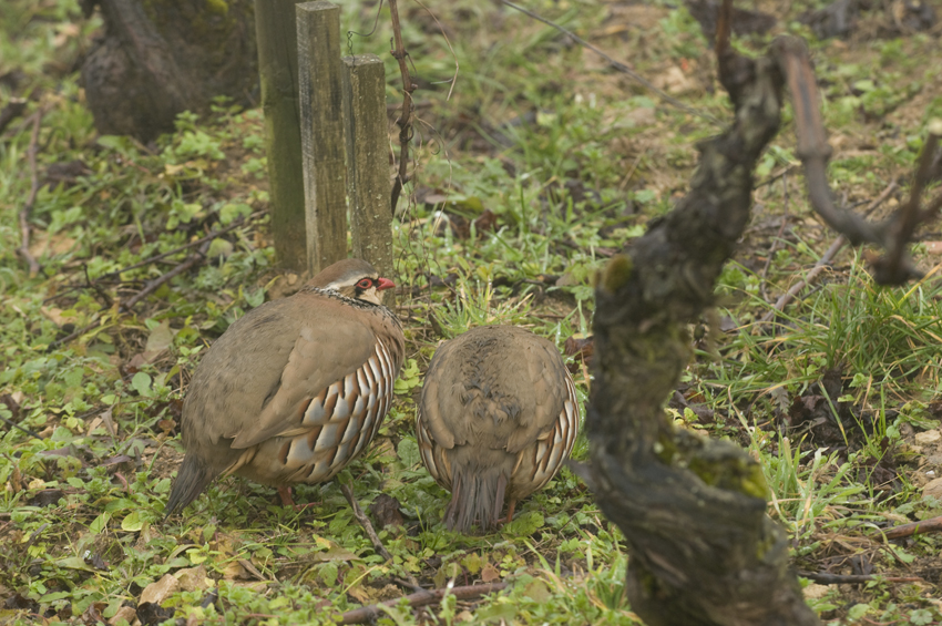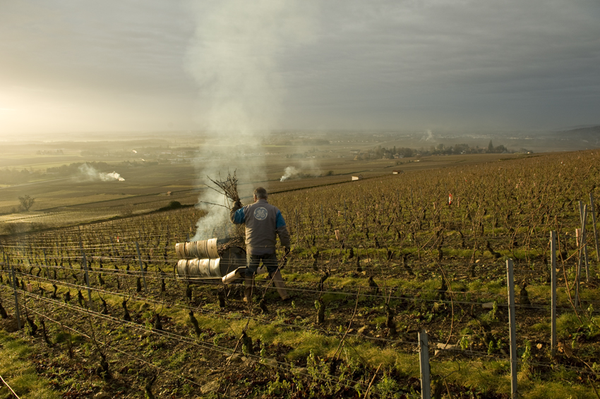 Tuesday was, at least, dry. No rain or fog but before dawn Bouchard’s Corton worker was making smoke below their red tiled…, well its hardly a cabotte, more a small house and major landmark on the hill from Aloxe and Ladoix. Anyway its always a choice to be made in the morning; to do a quicker circular tour of Les Bressandes on a good surface (now with small kerb stones to stop you driving into the large open concrete drain) or head through Aloxe-Corton and up betwen Perrieres and Pougets before swinging right to Corton or straight on to Charlemagne on tarmac that gives way to an increasingly rutted mix of soil and chunks of limestone. Not to good place to think about a three point turn !