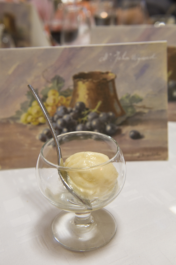 It seems we have to have a break between meat courses and take a digestif of sorbet and pear eau de vie. The “trou Bourguignon” seems to work !