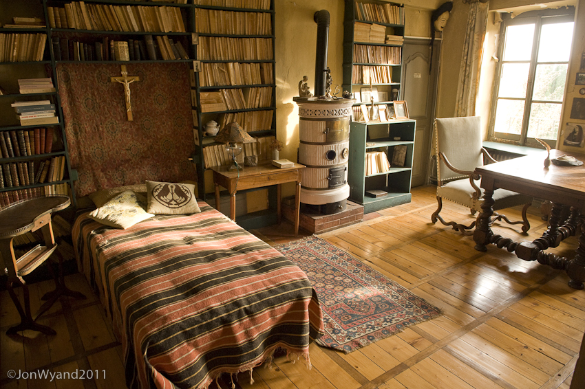 Jacques Copeau’s bedroom, kept as it was during his lifetime. The vineyards of Charlemagne can be seen from his window.