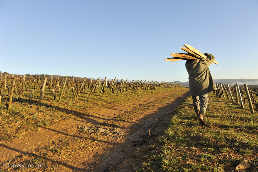High winds and periods of rain don’t slow down this tâcheron working for Hospices de Beaune on the mound of Les Vergennes