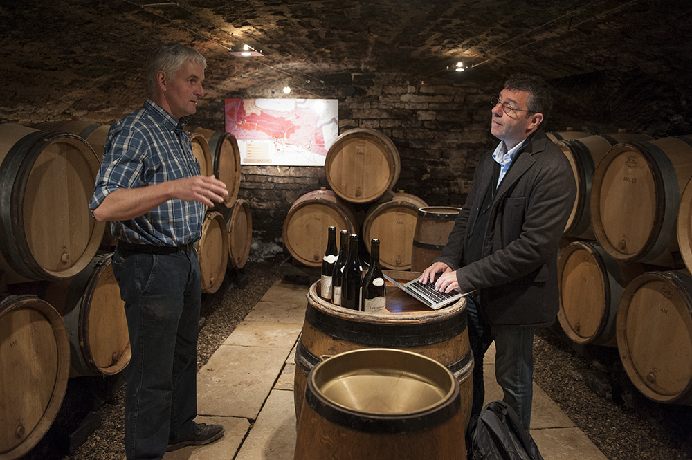 My April visit was a chance to meet the editor from Glénat the publisher, and François Perroy who will be writing the accompanying text. Things are starting to move quickly now in terms of production: picture selection, design and layout and most especially the choice of a title. Even a three hour dinner with a group of winemakers did not quite finish that job! We did have a very pleasant tour of the Hill with Claude Chapuis, author of an earlier book on Corton, as company and source of a lot of information for François.