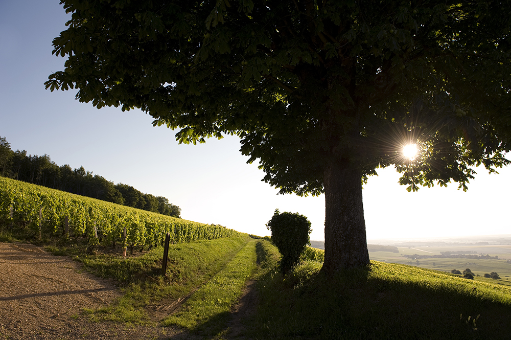 Evening light in Aloxe-Corton on a “precocious” vine.