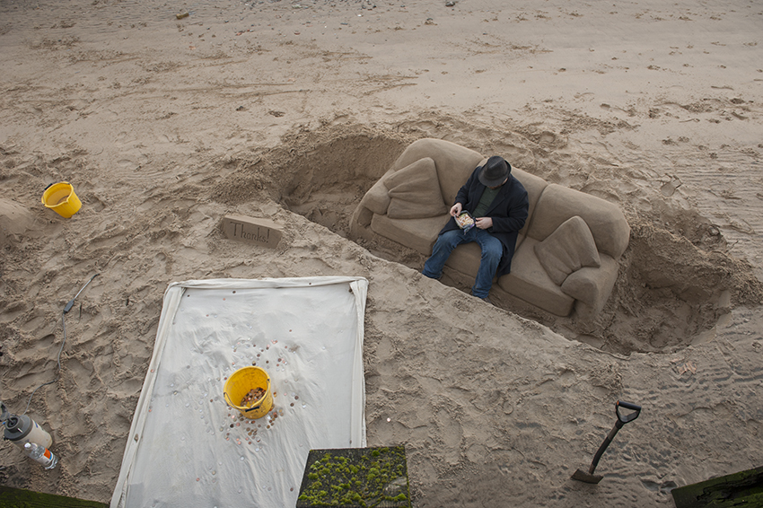 Another type of ephemeral installation by artist Luc Valvona on the river’s beach.