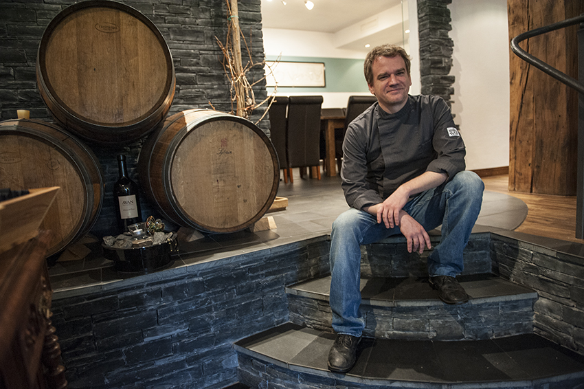 Mine host, chef Patrick Liehr at the St Laurentius Sektstuuf hotel and restaurant in Leiwen.Good food in a relaxed and friendly atmosphere. Super rooms. Overlooking the river, it must be even better in spring and summer.