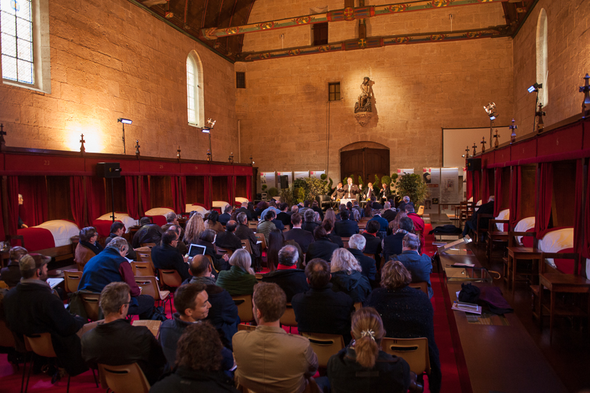 The Sunday press conference, always held in the impressive Salle des Pauvres in the Hospices itself.