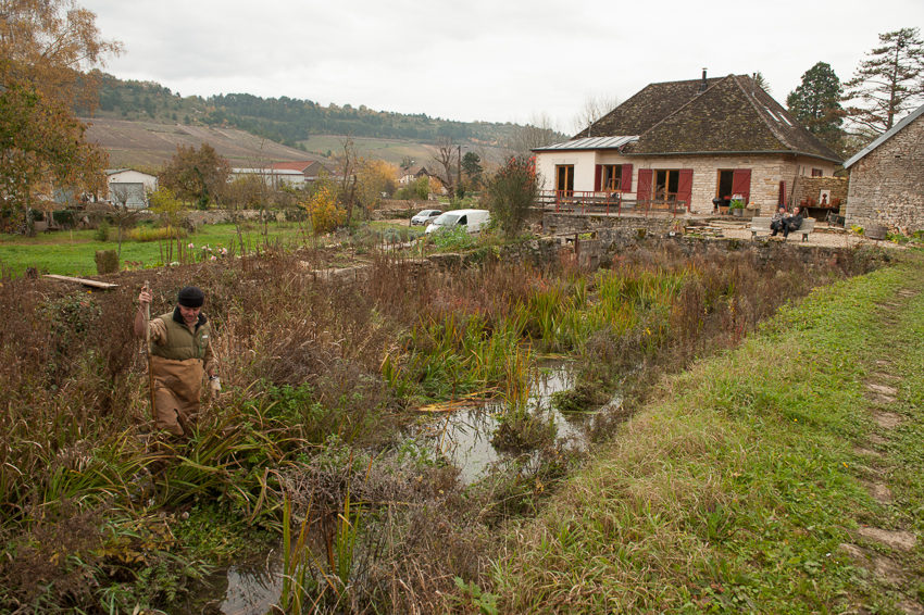 I was then free until a session with Jean-Charles Boisset in Nuits at 5.30 so I went back to Auxey-Duresses to see how my good friend Tom ” The Hungry Cyclist” is getting with his business showing cyclists a good time on the roads and at the tables of Burgundy. He has converted a ruined watermill into guest accommodation over the summer and begun receiving guests.