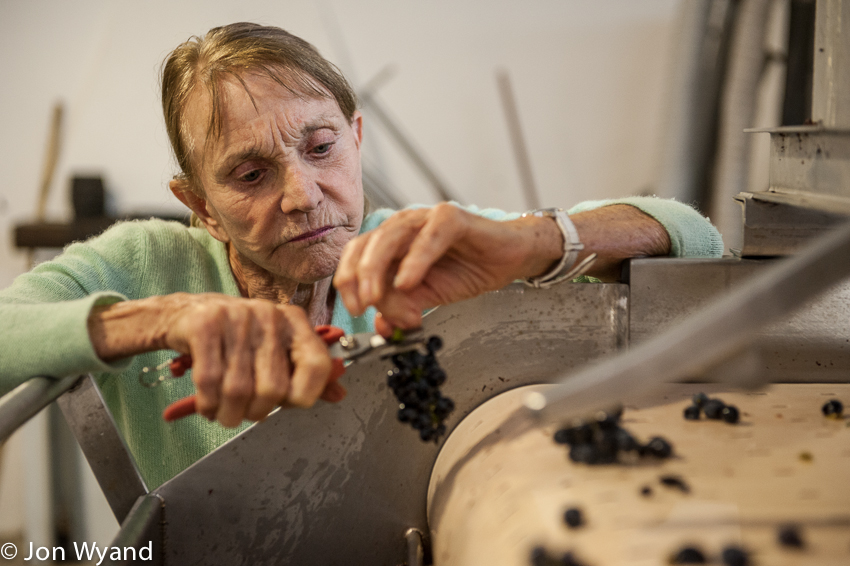 And, back in Vosne, Lalou Bize Leroy checks the triage.