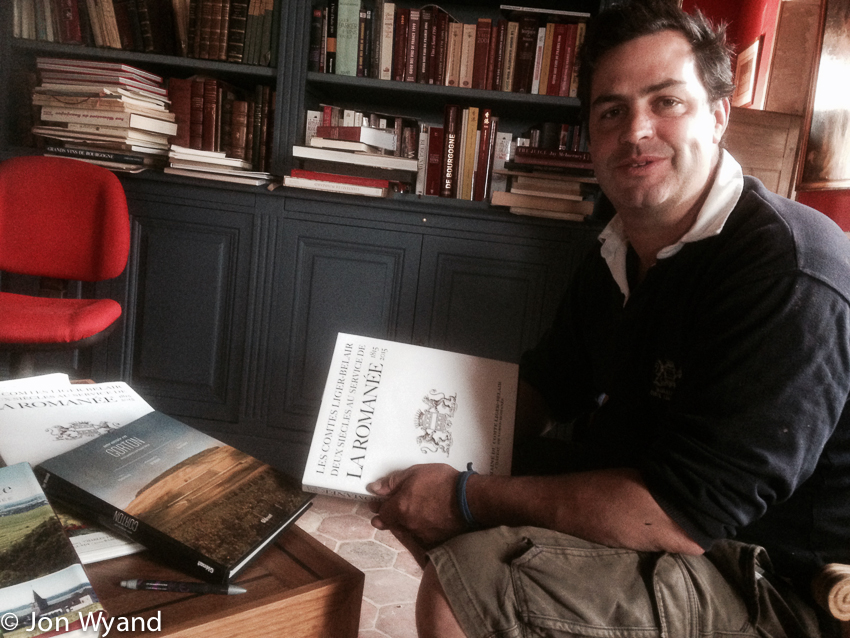 Exchanging books with Louis-Michel Liger-Belair in Vosne-Romanée