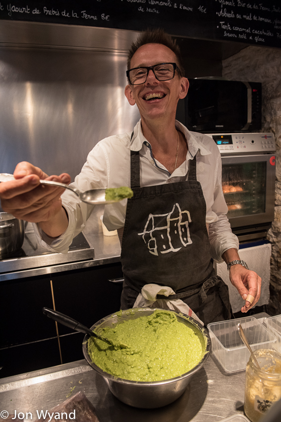 Then a quick call near Chavannay to see Lionel Faury up in the hills, before heading to Mauves, near Tournon for the night. Streets in Tournon was closed for its annual onion fair until 8 pm with an armed guard 100 metres behind the gendarmes in case somebody tried to get through ! I arrived rather late for dinner, but nothing is ever a problem for my hostess Monique so I ate well as usual and enjoyed sharing a Cheze St Joseph with her other guests. Delighted to see she had invested in the Corton book!