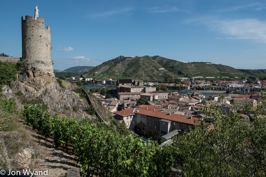 My first visit, after arriving by TGV at Lyon, was to the Seyssuel vineyard near Vienne on the east bank, a wonderful SW facing combe originally planted by the Romans but never granted an AOC, yet.