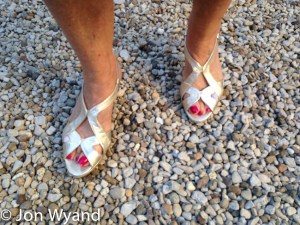 Early in the evening my eye was caught by the Cuban boots of Bonneau’s vineyard manager Fabien so they were snapped and I started noticing the variety of footwear on display in the chateau’s gravelled courtyard. It seemed both an alternative way of recording the event that might amuse Jean-Charles and a good way of meeting anyone in interesting shoes!