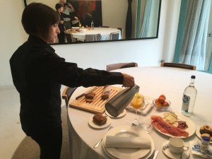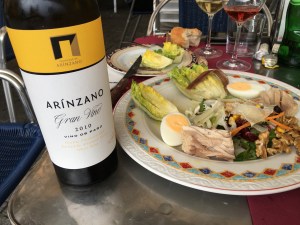 At Arinzano they are very proud to be a Vino de Pago, a vineyard recognised as a specific site, a superior appellation within an appellation is the simplest way to put it. Their name may not be one you are not familiar with but wearing my non-expert hat I loved it, especially the white ( my usual weakness ). My trip to the estate in Navarra was the repeat of a visit for the Finest Wines of N Spain book,which was in itself a wonderful eye-opening experience. The estate is now under new ownership but the gate and its view are still stunning, only this time I arrived after a two hour taxi ride from Bilbao which should not be seen as a drawback but very much a bonus. The scudding dark clouds were too. Its a dramatic spot that would have looked a little tame under a clear blue sky. The guest accommodation was perfect, with vines all around and I was spoilt with lunch and dinner at a variety of suitably good but relaxed local restaurants in the company of the wine maker, Diego Ribbert and the general manager Manuel Lozada. What could go wrong…? Is n’t there always a downside, a hiccup …?