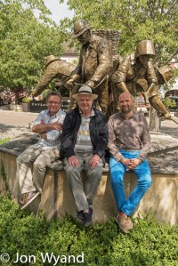 Elsewhere things go on as usual as Franck Grux, Olivier Leflaive and Jean Soubeyrand pose in the shade of a Puligny roundabout.