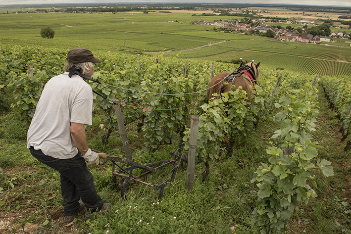 A horse ploughing pic, just for me ! A lovely morning with Prosper the Percheron and François the vineyard manager at Chandon de Briailles overlooking the outskirts of Savigny.