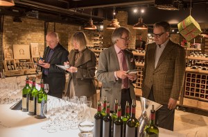 Eric Rousseau examines what’s on offer while Brice de la Morandière from Domaine Leflaive chats with Pierre de Benoit from Domaine de Villaine